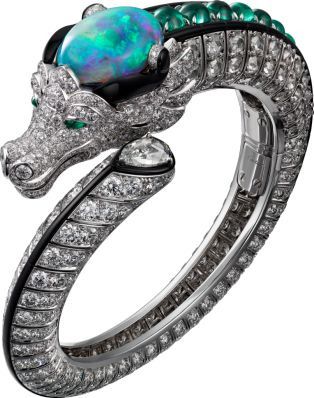 Cartier “Drakon” Yüzük, beyaz altın, siyah opal, zümrüt, pırlanta, oniks.
