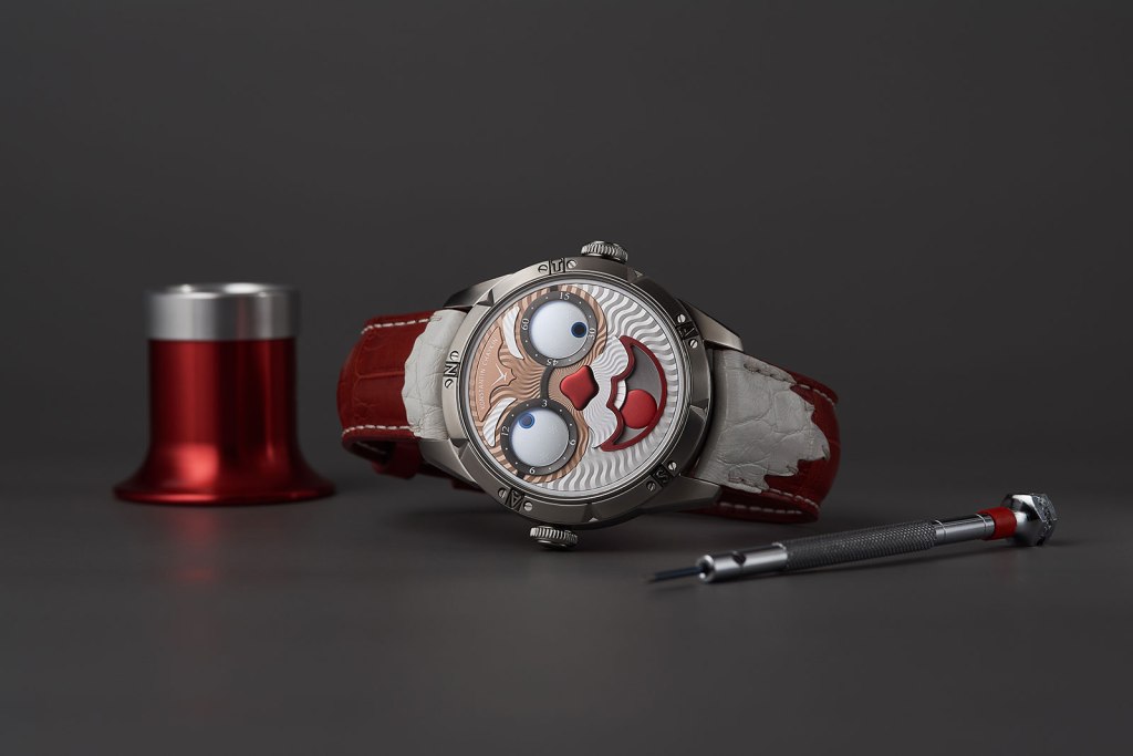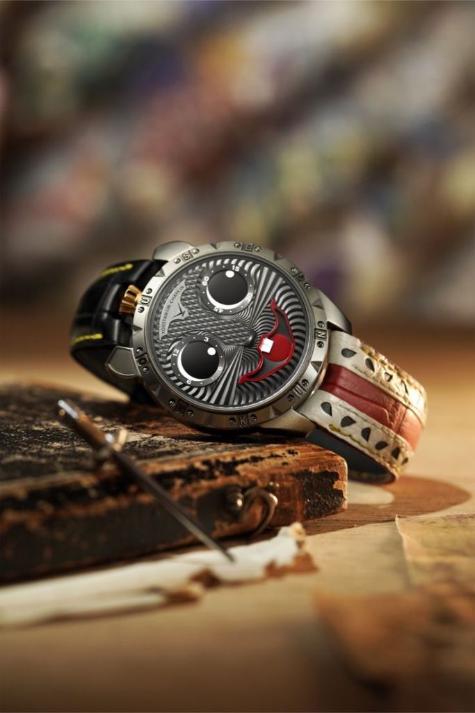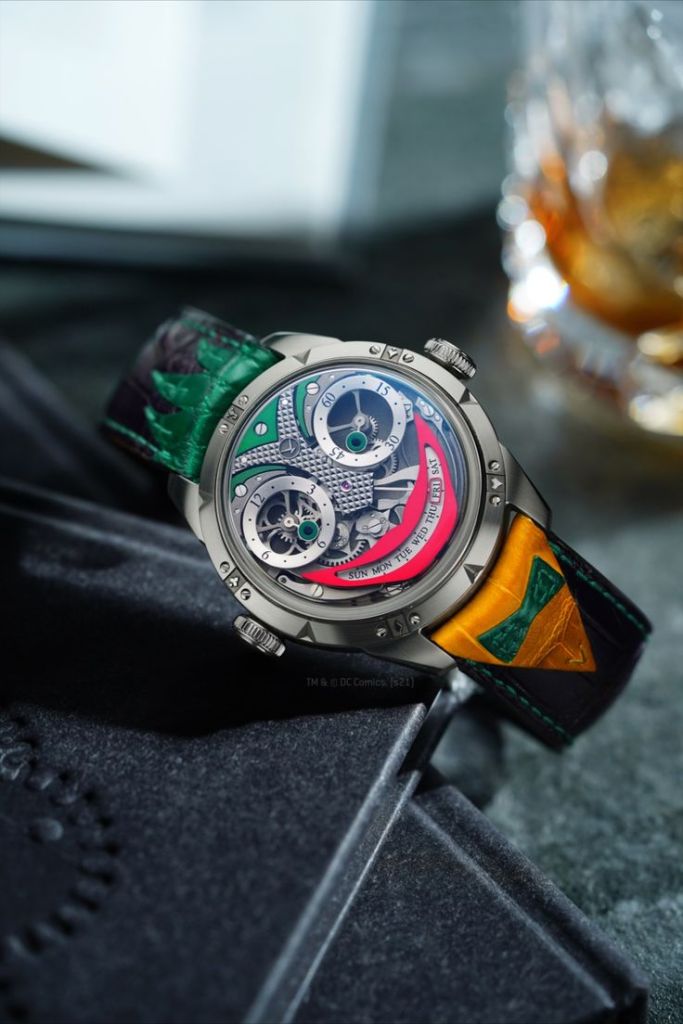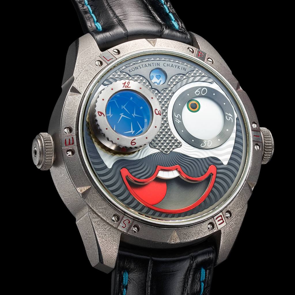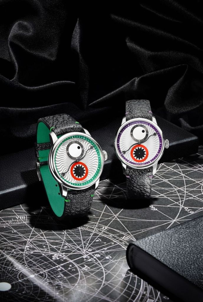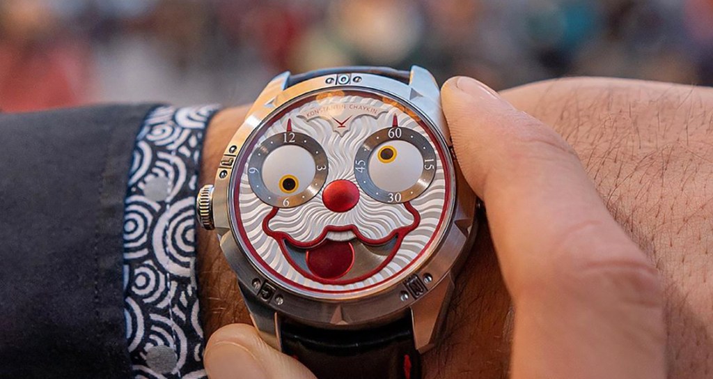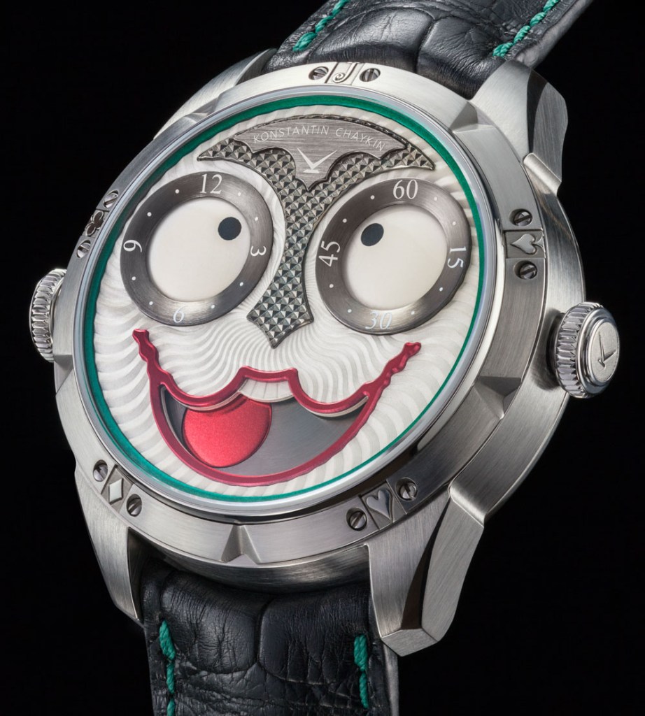 Joker saatleri ve farklı çeşitleriyle tanınan Konstantin Chaykin, palyaçonun gözlerini devirirken daralan gözbebeklerinin saat ve dakikaları gösterdiği, Ay’ın hangi yaşta ve hangi evrede olduğunu gösteren bir ibarenin de gülümsemesi olarak kullanıldığı bu saatleriyle çılgınlığa güzel bir gönderme yapıyor.