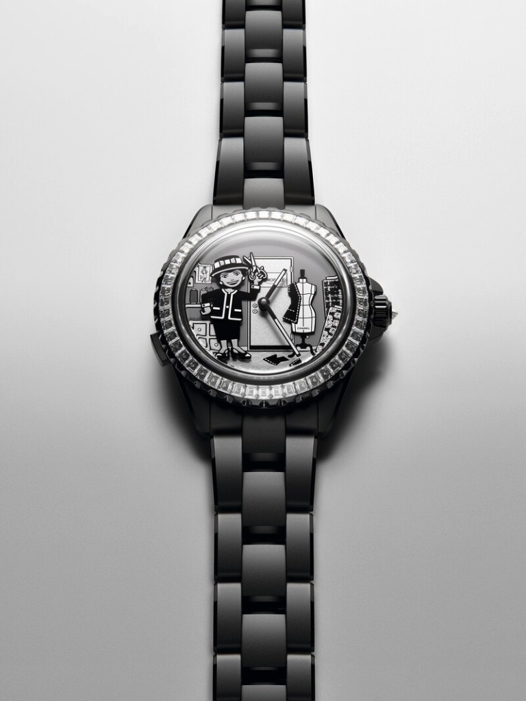 Tasarım açısından daha bilindik olan Chanel J12 Couture Workshop Automaton oldu. Hem tuhaf hem de teknik açıdan sofistike olan bu saatin kadranında, saat dokuz yönündeki düğmeye basıldığında hareket eden Coco Chanel’in karikatürize bir portresi yer alıyor. Şirket içi manuel kurmalı mekanizma ile çalışan J12 automaton, Chanel’in bir saat üreticisi olarak gücünü yansıtıyor.