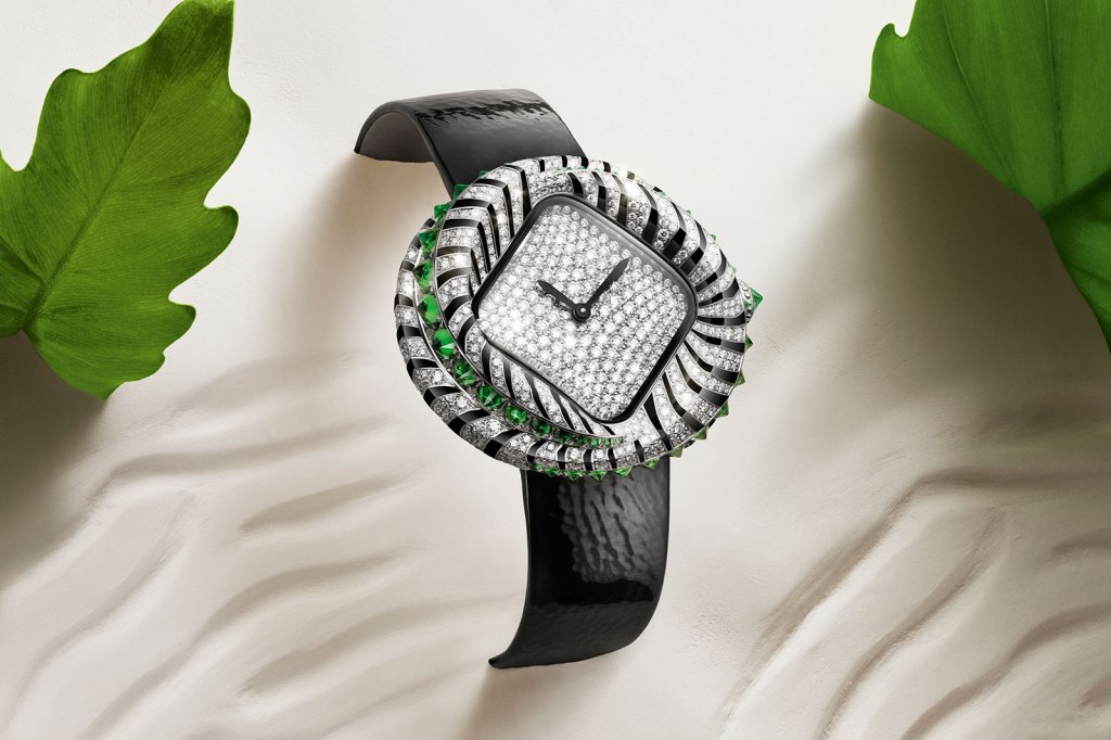 Cartier’nin Watches & Wonders 2024’te tanıttığı Animal Jewellery saat koleksiyonunda çarpıcı Pebble “Tigre” de yer alıyor. Tasarımcısı tarafından “zebra ve timsah arasında hem grafik hem de organik olan hayali bir karşılaşmadan” esinlenerek tasarlandığı belirtilen saat, esasen lake ve değerli taşlarla süslenmiş çift katmanlı bir çerçeveye sahip bir Pebble. Saat meraklıları bunun geleneksel bir mücevher saati – saatten çok mücevher – ve içindeki mekanizmanın kuvars olmasından dolayı hayal kırıklığına uğrayabilir.