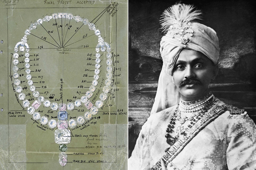 Batılılar, Burma’nın “güvercin kanı” yakutlarına, Bedehşan spinellerine, Golconda tip IIA elmaslarına, Kolombiya zümrütlerine, Keşmir safirlerine ve Arap incilerinin ihtişamından her zaman etkilenmişlerdir.Bunun sonucunda, 20. yüzyılın başlarında Maharajalar mücevher tarihindeki en şatafatlı parçalardan bazılarını yaptırdılar. Bunlardan en önemlisi 1928 yılında Patialalı Maharaja Bhupinder Singh (1891-1938) tarafından yaptırılan Cartier Patiala Kolye’dir.