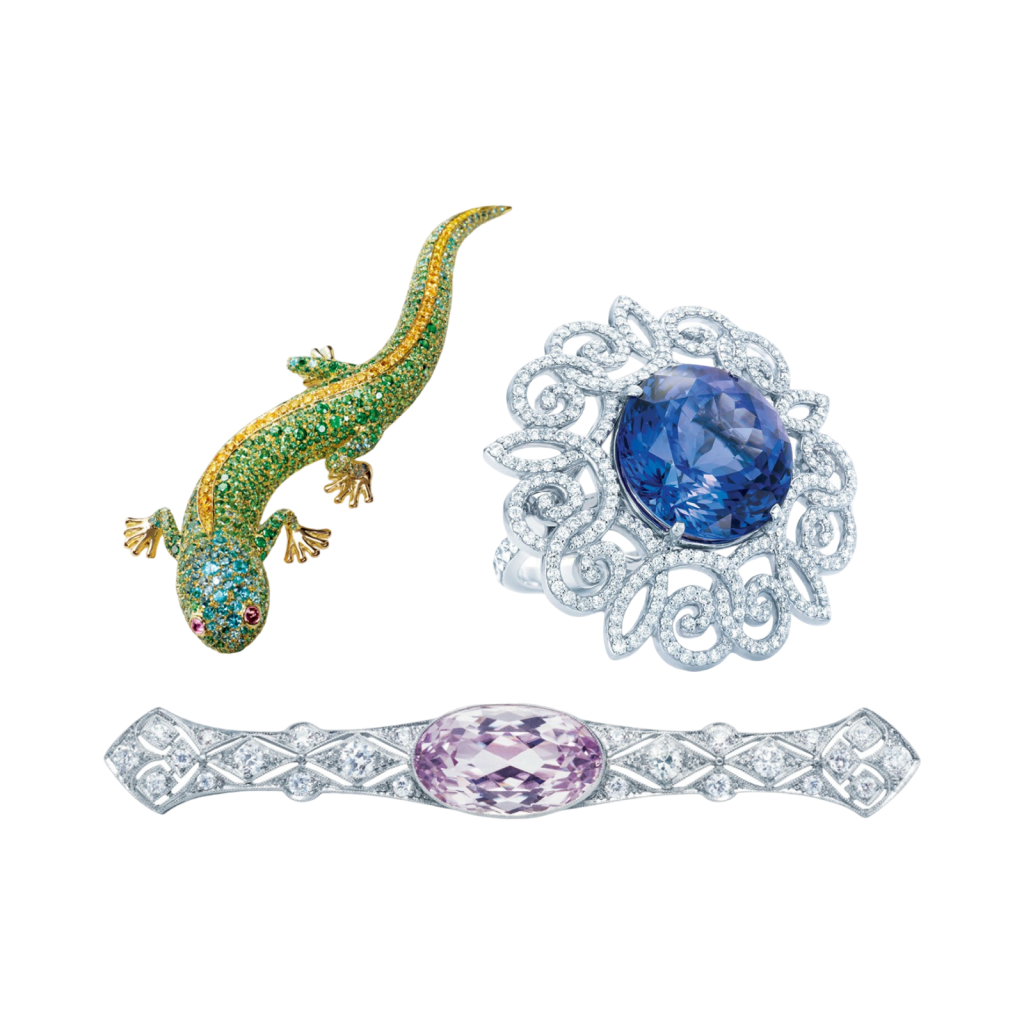 Tiffany, tarihi boyunca sadece nefes kesici parlaklıktaki elmaslarla dünyanın gözlerini kamaştırmakla kalmadı, aynı zamanda bizi daha önce bilinmeyen renkli değerli taşların çarpıcı bir seçkisiyle tanıştırdı. 1902 yılında Tiffany, ismini Kaliforniya’da morumsu pembe taşı keşfeden efsanevi Tiffany gemologu George Kunz’dan alan kunziti tanıttı. Tiffany ayrıca 1910 yılında Madagaskar’da morganiti keşfetti ve adını en sadık müşterilerinden biri olan bankacılık kralı John Pierpont Morgan’ın onuruna verdi. Bunları 1967’de tanzanit ve 1974’te tsavorit izledi; ve halen Tiffany’nin gemologları, en muhteşem değerli taşları tedarik etmek için dünyanın en ücra köşelerine seyahat etmeye devam ediyor.