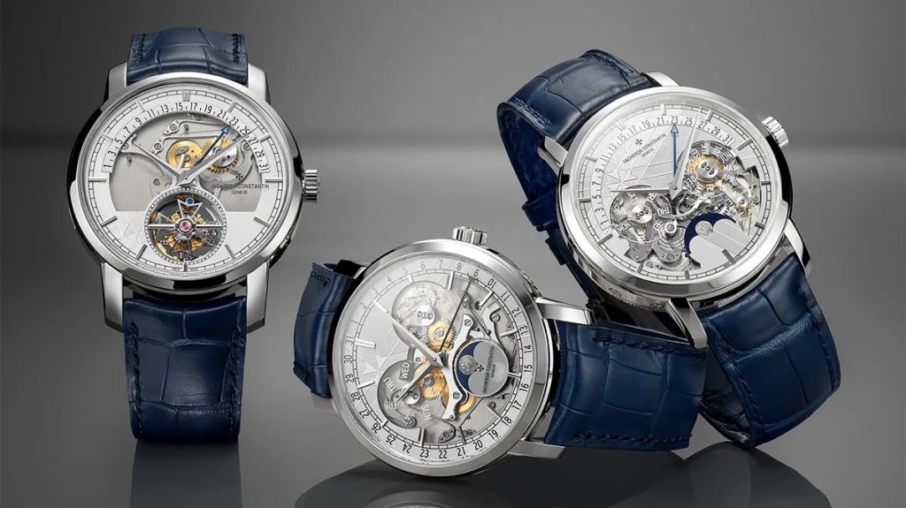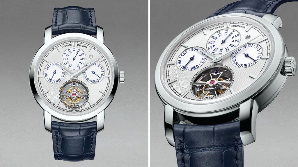 Traditionnelle Openface serisi ise üç teknik şaheser içeriyor: 72 saat güç rezervli tourbillonlu Retrograde Date, yeni kalibreli Perpetual Calendar ve Complete Calendar modelleri; hepsi platin kasalı ve açık kadranlarıyla mekanik incelikleri gözler önüne seriyor. Ayrıca, 42 mm’lik Tourbillon Perpetual Calendar modeli, yeni otomatik kalibresi, mükemmel dengeyle yerleştirilmiş takvim fonksiyonları ve 72 saatlik güç rezerviyle markanın 270 yıllık uzmanlığını kutlayan bir başka sınırlı üretim parçası olarak öne çıkıyor. Tüm modellerde koyu mavi timsah derisi kayış tercih edilmiş.