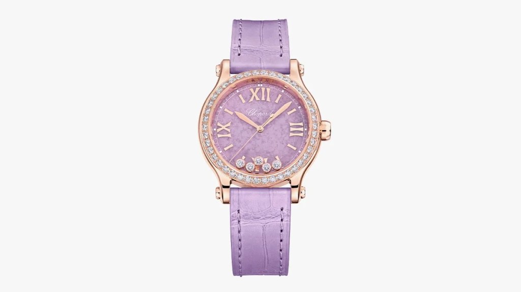 Kadınlara yönelik L’Heure du Diamant modeli, büyük elmaslarla süslenmiş çerçevesi ve ay evresi göstergesiyle şiirsel bir gece-gündüz saatine dönüşürken, otomatik 09.02-C kalibresiyle donatılmış. Happy Sport koleksiyonunun yeni üyesi ise lila renkli lepidolit taşından yapılmış kadranı, ametist detayları ve içinde özgürce hareket eden beş elmasıyla zarif ve feminen bir tasarım sunuyor; 33 mm’lik kasa boyutu ve 09.01-C kalibresiyle bu özel model sınırlı sayıda üretiliyor.