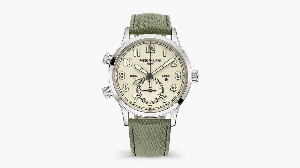 Patek Philippe, 2015’te tanıttığı Calatrava Pilot Travel Time modelini yenileyerek daha okunaklı fildişi lake kadran, siyah beyaz altın indeksler ve çift zaman dilimi göstergesiyle sunuyor. Saatin 8 ve 10 yönündeki butonlarıyla saat ileri veya geri alınabiliyor; yeni 26-330 S C FUS mekanizması, tarihi otomatik olarak yerel saate göre güncelliyor.