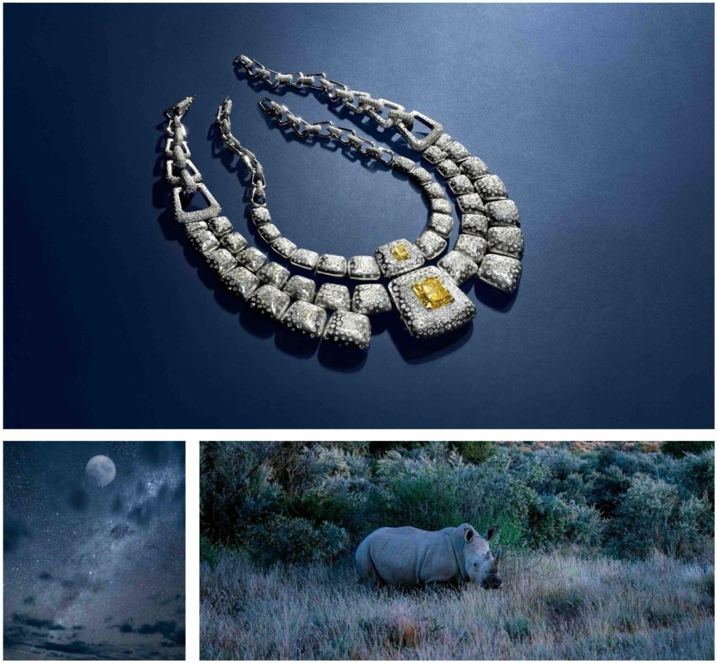 Koleksiyonun tasarımları arasında Kalahara gibi çölün sıcaklığını hissettiren setler, Astra gibi gökyüzünü ve yıldızları yansıtan takımlar öne çıkıyor. Bazı parçalarda hayvan figürlerinden ilham alınmış; ama bu detaylar hiçbir zaman doğrudan semboller değil, daha çok doğanın hareketini ve enerjisini yansıtan soyut formlar olarak işlenmiş. Bu detaylar, koleksiyona Messika’nın kendine özgü “hareket hissi”ni katıyor; taşlar sanki nefes alıyor, ışıkla birlikte akıp gidiyor.